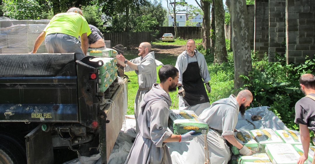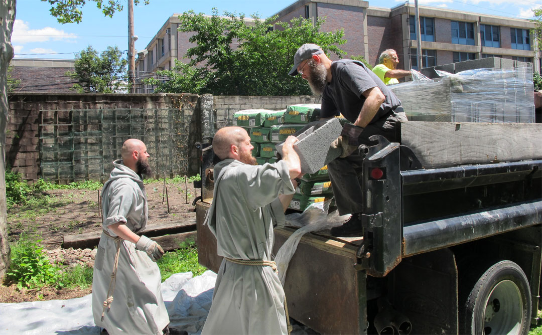 Benedict Joseph and Fr. Alan are skilled masons. We flew them in from England to do the needed masonry work to repair the exterior